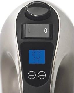 Ontdek de perfecte keukenhulp voor iedere thuiskok: een robuuste handmixer die ook als staafmixer inzetbaar is. Met een krachtige 400 W motor en 16 snelheidsstanden heb je precieze controle — van luchtig kloppen en glad pureren tot stevig kneden van deeg en fijnsnijden van groente. Dankzij het verlichte LCD-display zie je in één oogopslag de ingestelde snelheid en de gebruikstijd.