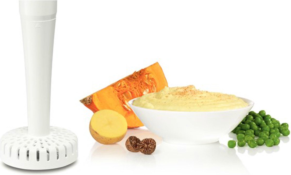 - De afneembare messen en mixvoet zorgen voor gemakkelijk schoonmaken en veilig gebruik.