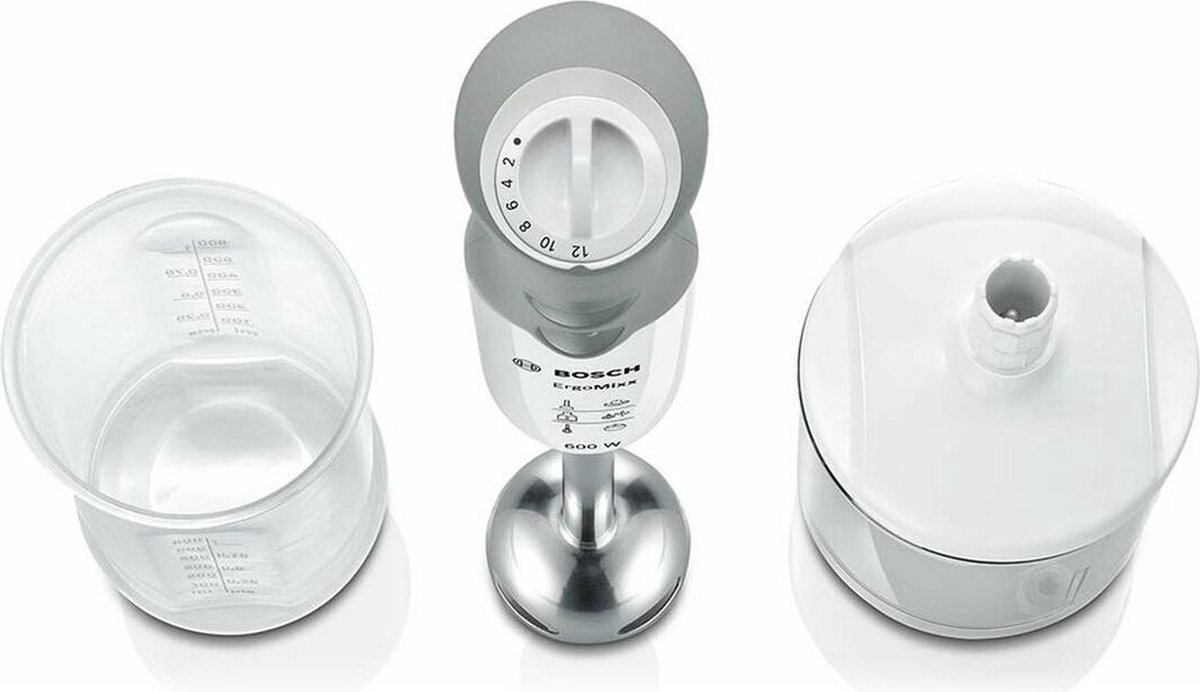 De Bosch MSM66155 is een krachtige en veelzijdige staafmixer die jouw keukenactiviteiten naar een hoger niveau tilt. Met zijn strakke design in wit en grijs past hij perfect in elke keuken en biedt hij indrukwekkende prestaties voor het bereiden van heerlijke maaltijden.
