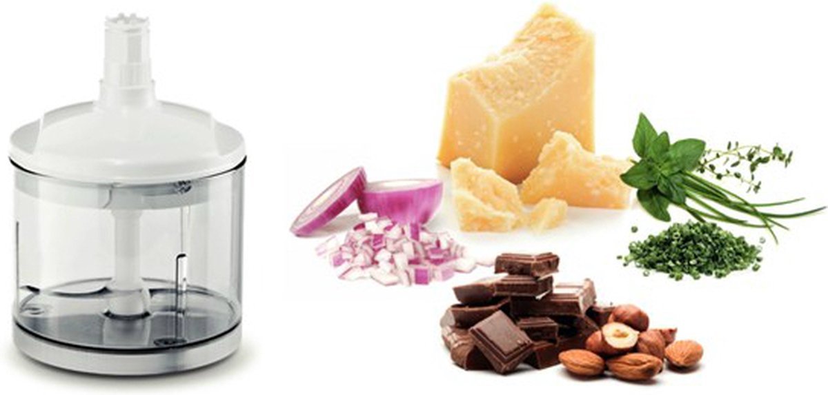 - De mixer wordt geleverd met een hakmolen voor het hakken van noten, kruiden enarisentiëlen.