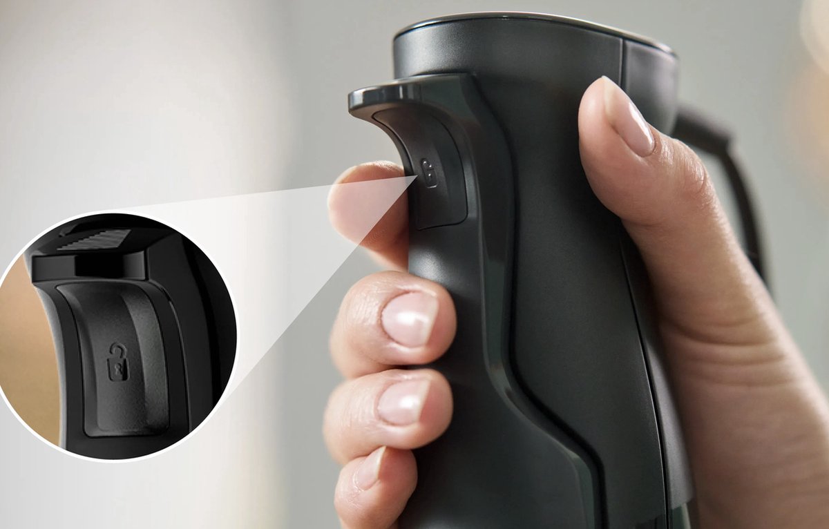 - Compacte afmetingen: Met een hoogte van slechts 7,8 cm en een lengte van 5,7 cm past deze mixer perfect in elke keukenlade.
