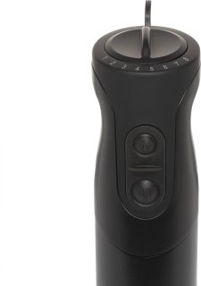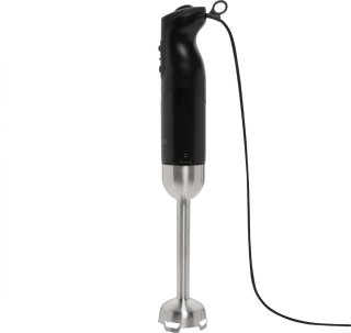 Het apparaat heeft een ergonomische soft-touch handgreep waardoor hij prettig in de hand ligt, ook bij intensief gebruik. De behuizing is uitgevoerd in mat zwart kunststof met een robuuste RVS pureerstaaf. Met het meegeleverde wandophangsysteem berg je de staafmixer overzichtelijk op en heb je hem altijd binnen handbereik.