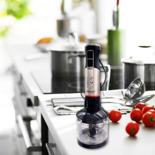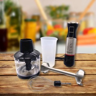 - Multifunctioneel: één apparaat met drie opzetstukken (staafmixer, garde en hakmolen) voor maximale flexibiliteit.
