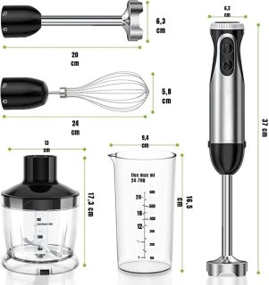 - Inclusief: staafmixer, garde/klopper, 500 ml hakbeker, 700 ml maatbeker