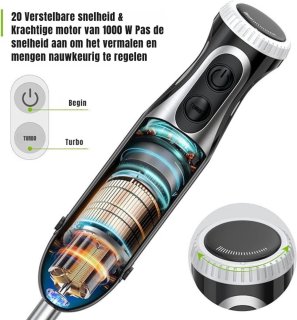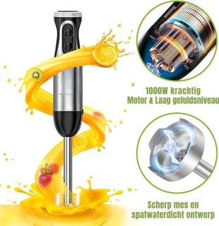 - Krachtige 1000 W motor – pureer, hak en klop moeiteloos ook wat stevigere ingrediënten. Minder tijd, meer resultaat.