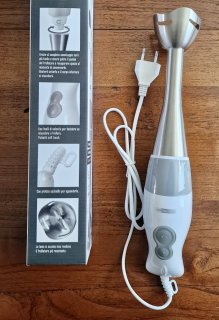 - Veiligheid en conformiteit: De staafmixer heeft een zichtbare CE-markering, wat aangeeft dat het product voldoet aan de geldende Europese veiligheidsnormen.