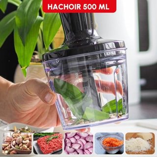 - Veelzijdig in gebruik: De 800 ml houder is ideaal voor shakes, soepen en sauzen; de set bevat bovendien een hakmolen en een garde voor hakken, kloppen en mixen.