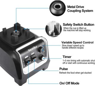 - Krachtige prestaties: 2200 W motor en tot 45.000 omw/min zorgen dat ijs, noten en harde groenten moeiteloos worden vermalen.